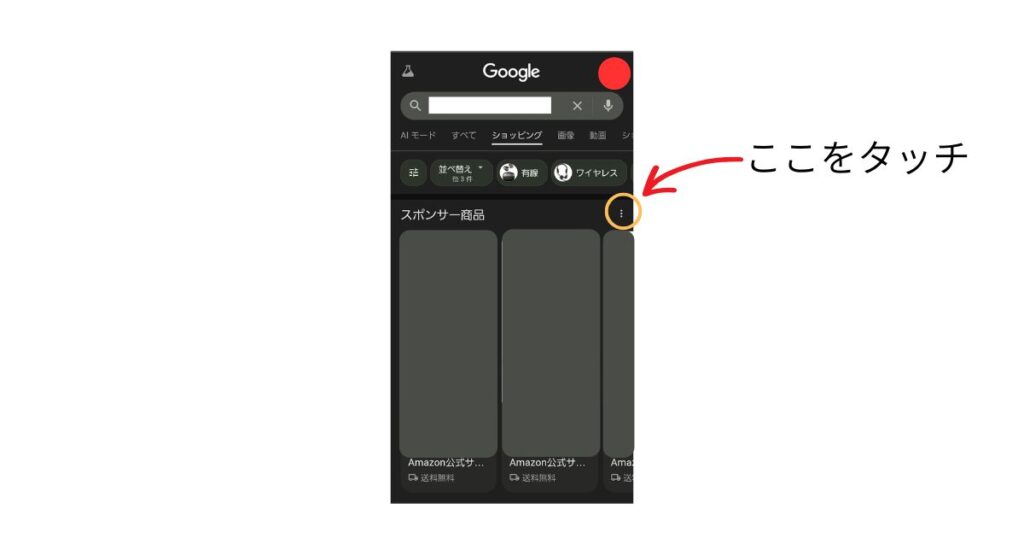 1. 検索結果にある「スポンサー」横のアイコンをタップ