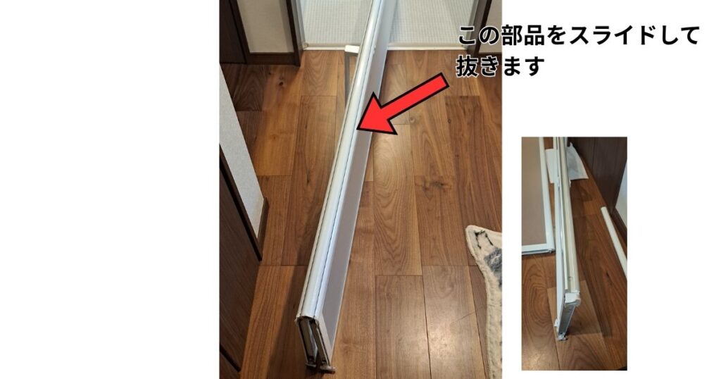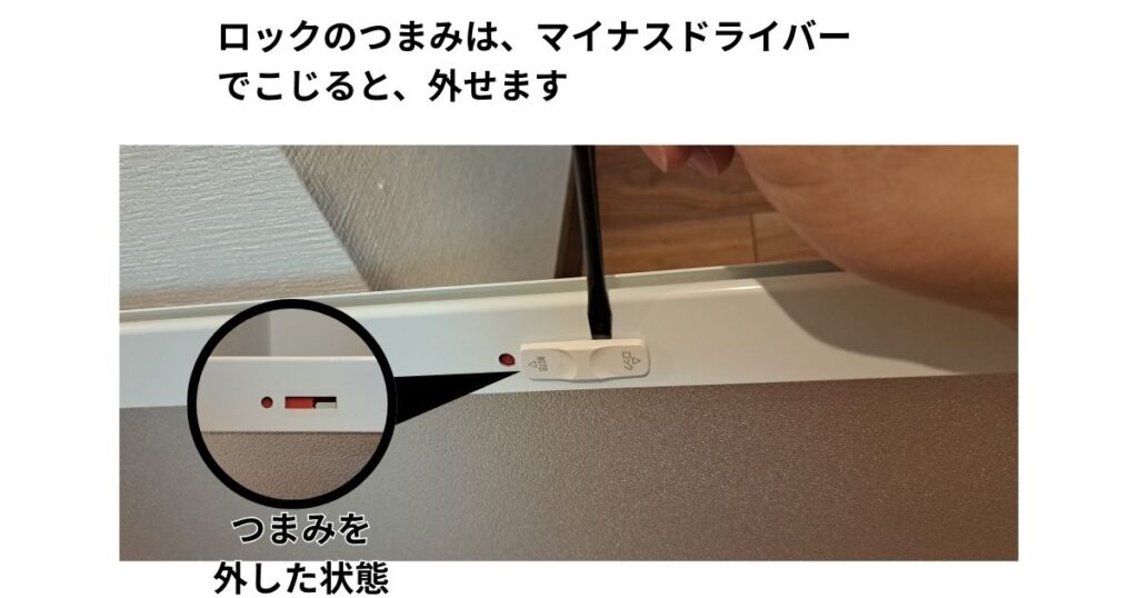 ドアの上に外し方が書いてあるので、そのとおりにすれば簡単に外すことが出来ます。