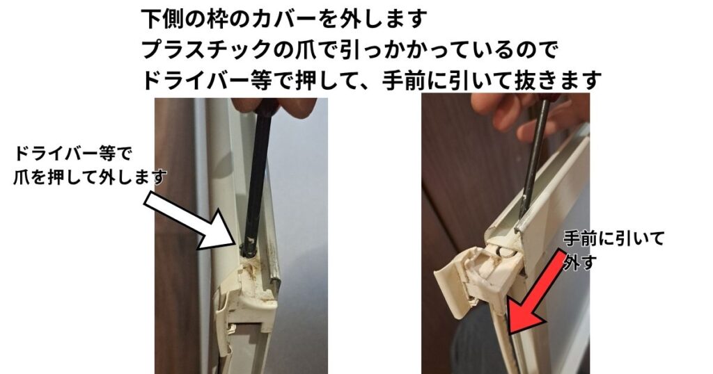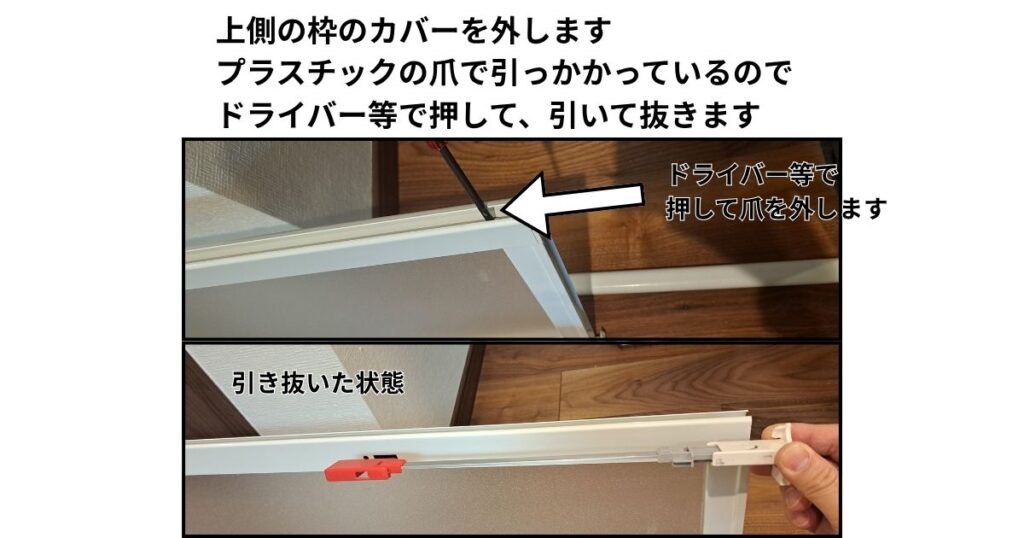 写真のようにカバーを外し、ドア枠を分解していきます。