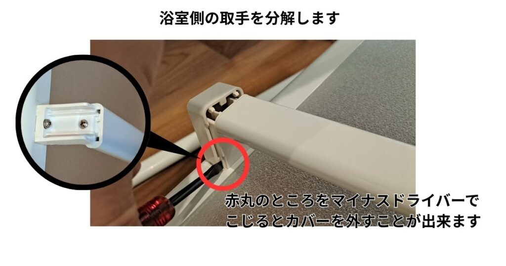 今回は、子どもが割ってしまった浴室ドアのアクリルパネルの分解をします。