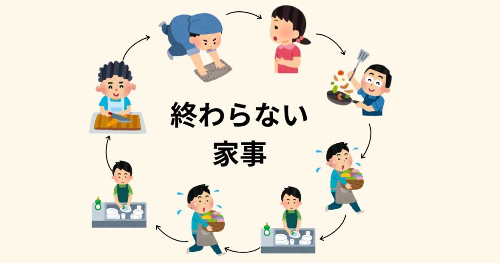 そして私は、食事作り・洗い物・下の子対応・買い出し…と家事を担当することに。